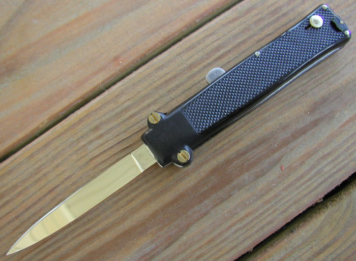 This is a S/A OTF . This knife closes by pressing the button to let the blade drop down most