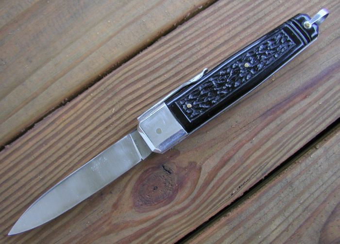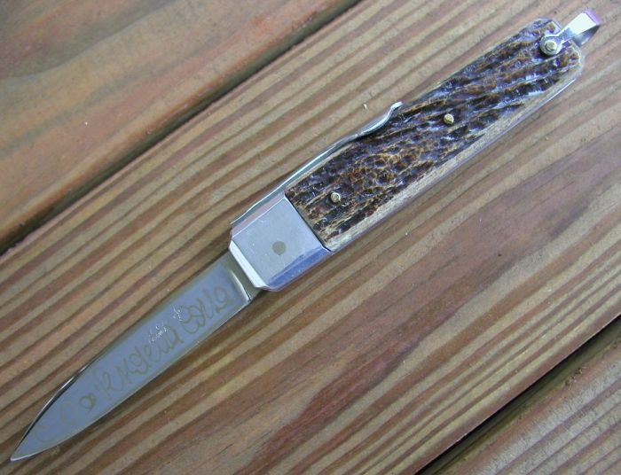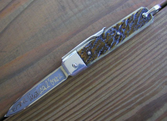 a star and "INOX" to the right. The scales are beautiful jigged bone.