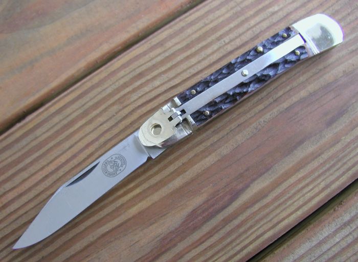 This is a 10cm Hugo Koller with a clip point blade. The scales are genuine jigged bone.