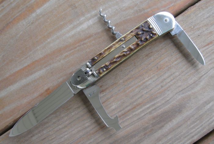 This is an 11cm Hugo Koller 4-blade camper model. The scales are genuine stag.