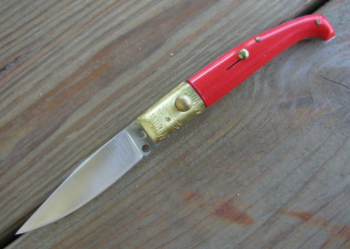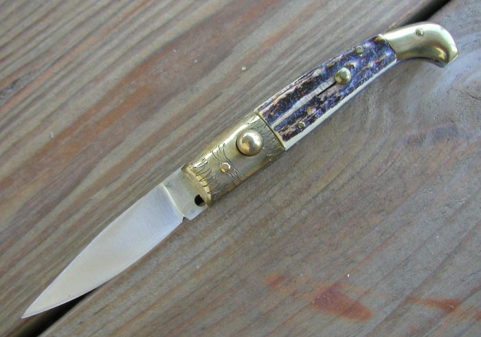 stamped with the Jndiana logo. They are a button open, button close mechanism.