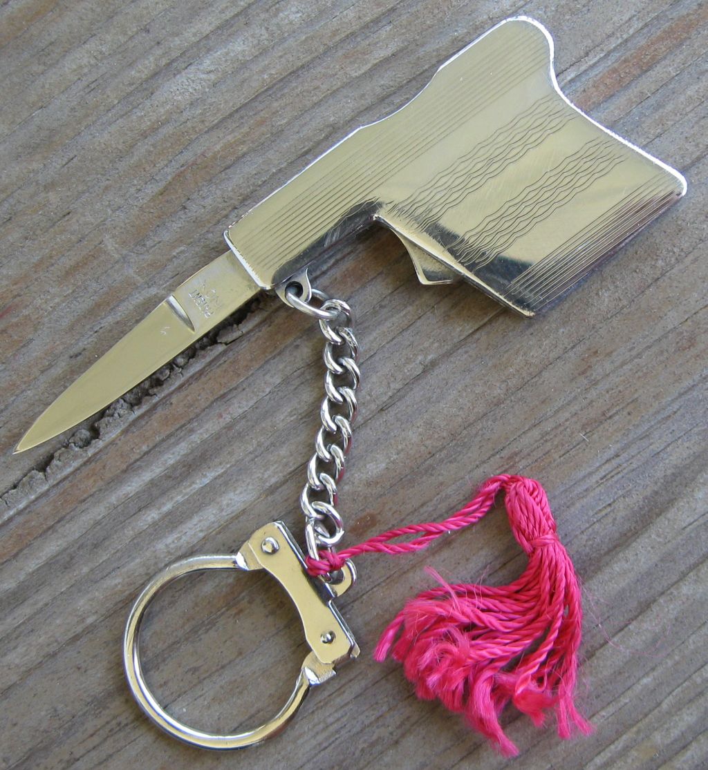 This keychain was made in Italy and is tang stamped "Patent" over "Inox".